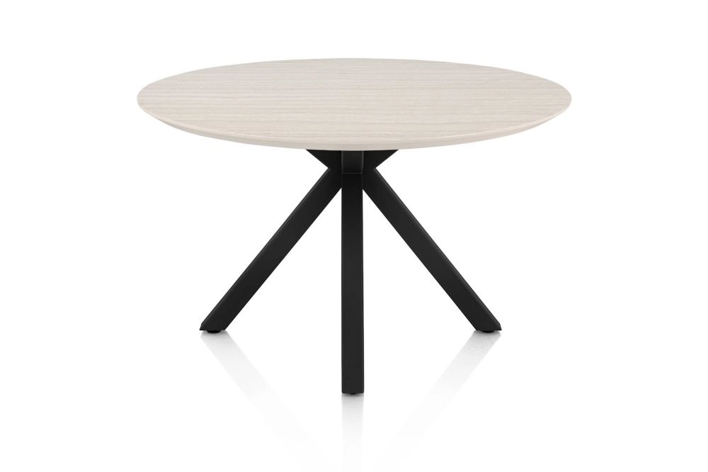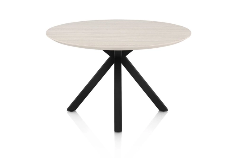 Caletta, eetkamertafel rond 120 cm. - HPL Primo Laminato blad - centrale kruispoot zwart - Travertin