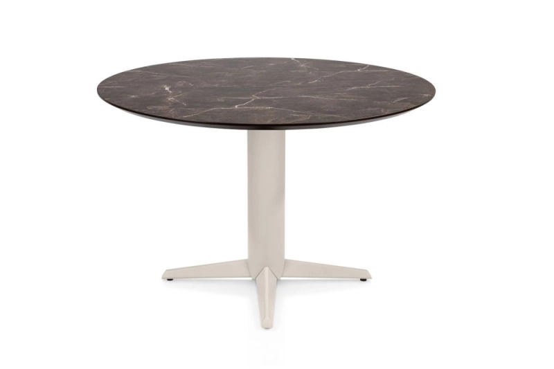 Caletta, eetkamertafel rond 120 cm. - HPL Primo Laminato blad - centrale teenpoot crème - marble brown