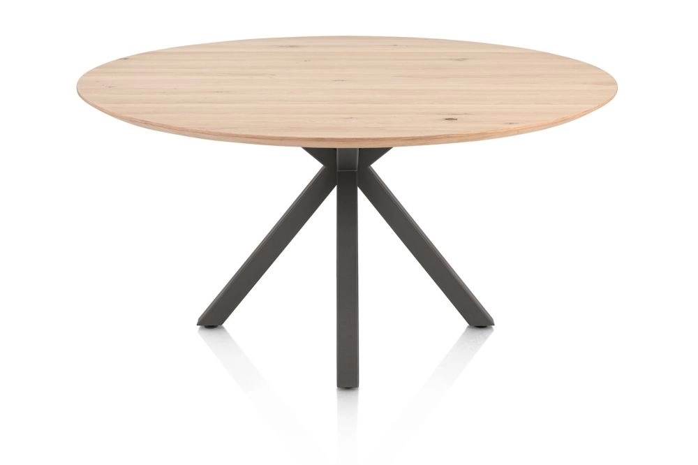 Caletta, eetkamertafel rond 150 cm. - eiken blad - centrale kruispoot grafiet - natural