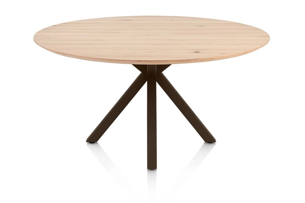 Caletta, eetkamertafel rond 150 cm. - eiken blad - centrale kruispoot steelbrown - natural