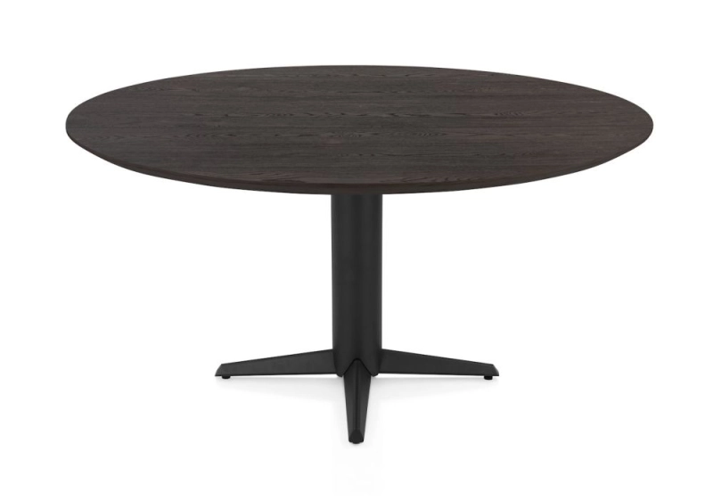 Caletta, Eetkamertafel rond 150 cm. - eiken blad - centrale teenpoot rough off black - Burned Antique Silver