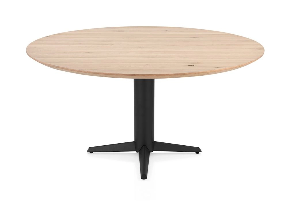 Caletta, Eetkamertafel rond 150 cm. - eiken blad - centrale teenpoot rough off black - natural