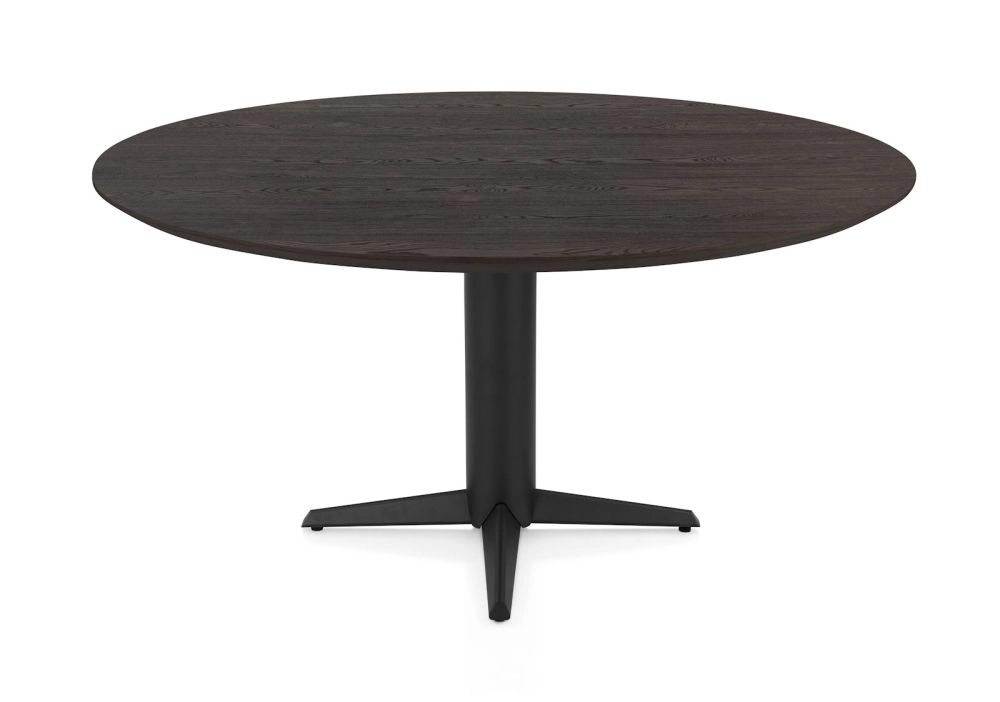 Caletta, eetkamertafel rond 150 cm. - eiken blad - centrale teenpoot zwart - Basalt
