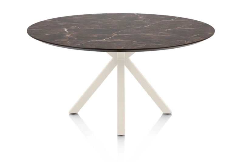 Caletta, eetkamertafel rond 150 cm. - HPL Primo Laminato blad - centrale kruispoot crème - marble brown