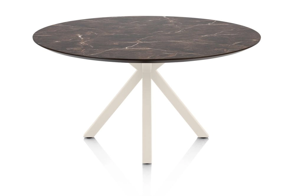 Caletta, Eetkamertafel rond 150 cm. - hpl primo laminato blad - centrale kruispoot crème - middenbruin