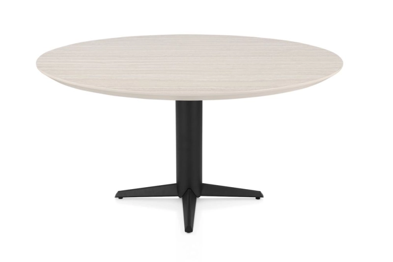 Caletta, eetkamertafel rond 150 cm. - HPL Primo Laminato blad - centrale teenpoot zwart - Travertin