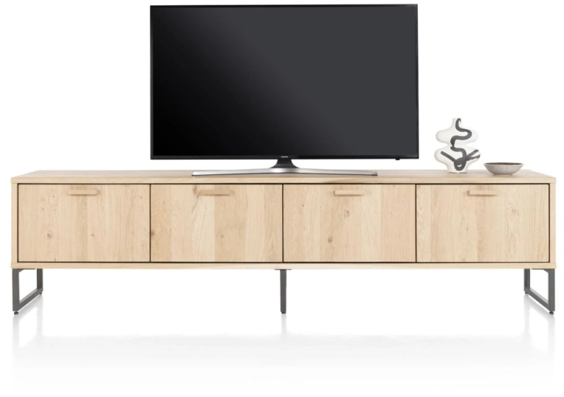 De Scandinavische look is kenmerkend voor collectie Castello. Door het gebruik van licht eikenhout in de kleur sand oak krijgt de collectie een hele natuurlijke, pure uitstraling. Deze collectie heeft 3 praktische lowboards in verschillende maten. Dit is het grootste lowboard van 240cm breed en 60cm hoog. De lowboards zijn allemaal exact even hoog. Zo kun je als het ware bouwen aan een lange TV-meubelwand. De deuren van de alle kasten zijn uitgerust met houten grepen en staan op metalen poten in de kleur grafiet. Alle kastdeuren zijn voorzien van een soft-closing systeem. Daarnaast zijn de lowboards voorzien van een handig kabelopbergsysteem.
