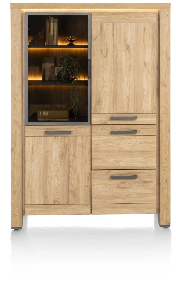 Delmonte, bergkast 120 cm - 1-glasdeur + 2-deuren + 2-laden (+ LED)