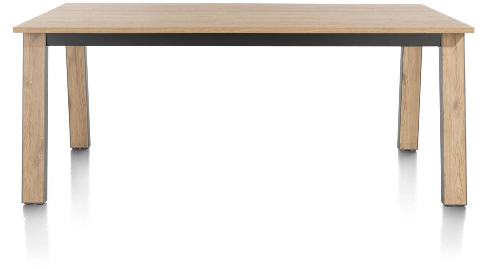 Bij de kastencollectie Delmonte horen ook gelijknamige tafels in dezelfde stijl en hetzelfde materiaal. Deze tafels hebben een eerder klassieke, rechthoekige vorm en zijn standaard uitgevoerd met 4 poten. Deze poten zijn van metaal in grafietkleur, maar hebben een HPL inleg in dezelfde kleur als het tafelblad, dat ook is uitgevoerd in hoogwaardig Primo Laminato (HPL). Dit is de kleinste eetkamertafel uit de collectie, meet 170x100cm en is 77cm hoog.