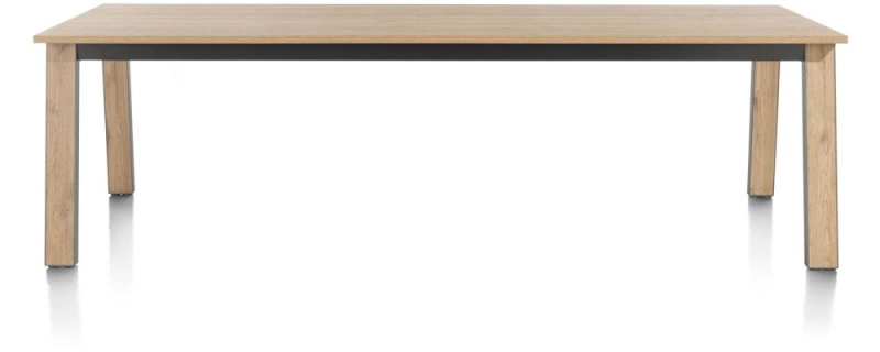 Bij de kastencollectie Delmonte horen ook gelijknamige tafels in dezelfde stijl en hetzelfde materiaal. Deze tafels hebben een eerder klassieke, rechthoekige vorm en zijn standaard uitgevoerd met 4 poten. Deze poten zijn van metaal in grafietkleur, maar hebben een HPL inleg in dezelfde kleur als het tafelblad, dat ook is uitgevoerd in hoogwaardig Primo Laminato (HPL). Dit is de grootste eetkamertafel uit de collectie, meet 230x100cm en is 77cm hoog.