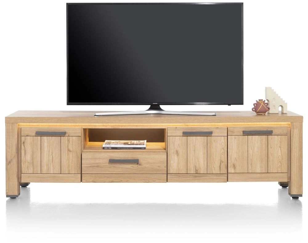 Delmonte, lowboard 200 cm - 3-deuren + 1-lade + 1-niche (LED + dimmer)