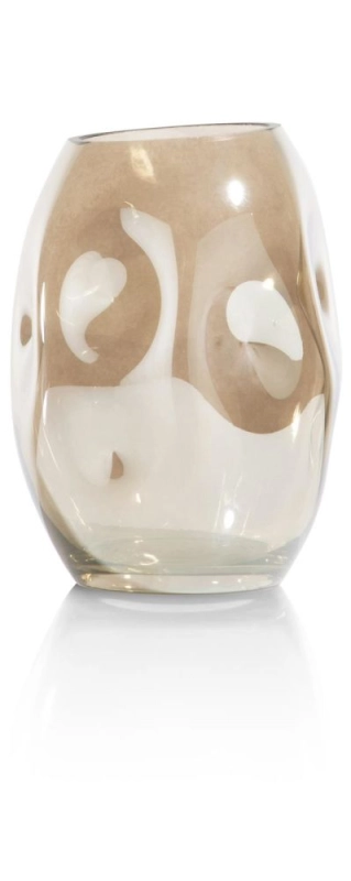 Deze grijze vaas DON mag met recht een klein kunstwerk genoemd worden. Deze glazen vaas is bijzonder dankzij de ‘deuken’ in de zijkant en het glanseffect dat de vaas een extra luxe uitstraling geeft. Vaas DON is 19 cm hoog en laat zich leuk combineren met de kleinere en de grotere vazen DON uit deze serie. Leuk met een mooi bosje (droog)bloemen erin!