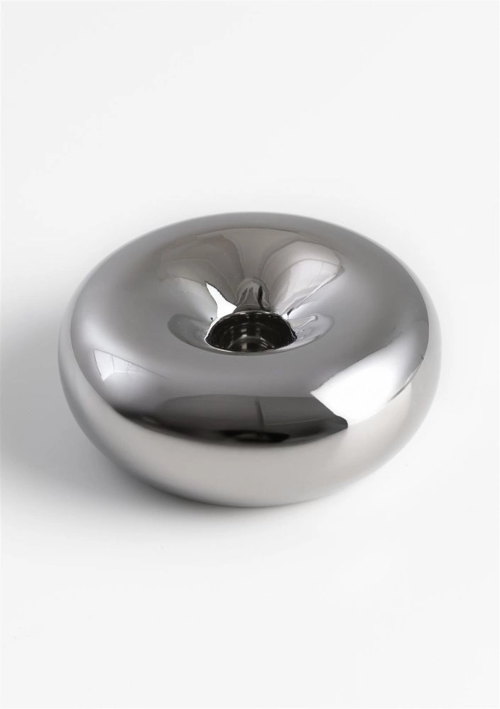 Voeg een vleugje moderne elegantie toe aan je interieur met de unieke Donut kandelaar van COCOmaison. Deze bijzondere kandelaar, gemaakt van keramiek, heeft een opvallende zilveren/chromen kleur die een luxe uitstraling geeft. De kandelaar is vormgegeven als een donut, wat hem tot een kleine eyecatcher maakt in elke ruimte. Plaats hem op een bijzettafel, in een open kast of op een dressoir en laat je interieur stralen met dit stijlvolle en speelse object. Of je nu een gezellige sfeer wilt creëren tijdens een diner of een verfijnd accent wilt toevoegen aan je woonkamer, de Donut kandelaar van COCOmaison is de perfecte keuze. Deze kandelaar heeft een diameter van 12 cm.