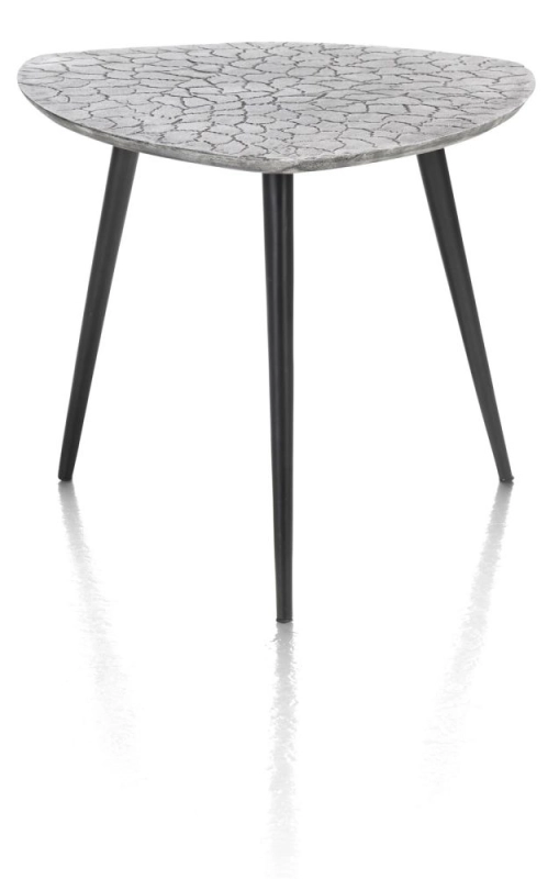 Deze salontafel uit collectie Dorval is volledig van metaal en is apart te plaatsen, maar kan ook deel uitmaken van een salontafelset. Deze salontafel meet 53x54cm en heeft een organische vorm. Het tafeltje is 46cm hoog. Het tafelblad van deze tafel is zilverkleurig met een reliëf-textuur en de tafel heeft zwarte metalen poten, maar er is ook een versie met een goudkleurig tafelblad en goudkleurige poten verkrijgbaar. Voor welke ga jij?