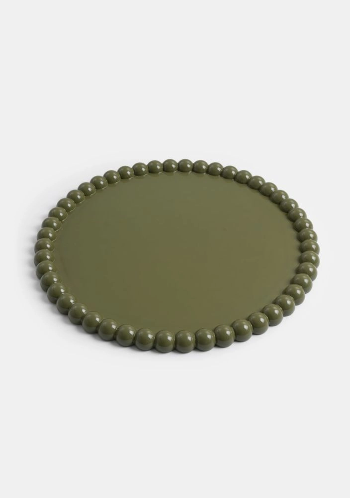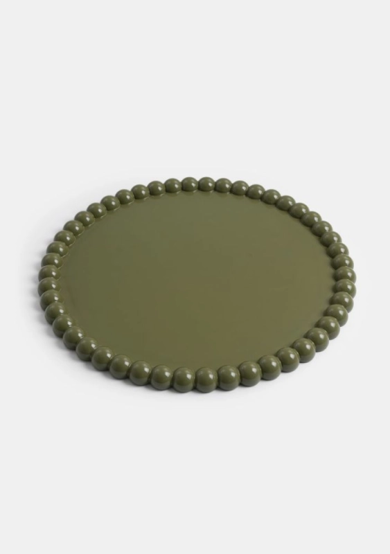 Breng een moderne, speelse uitstraling in je interieur met dit olijfgroene DOTS dienblad. Het ontwerp uit de DOTS collectie van COCOmaison, ontwikkeld in samenwerking met Trend Studio Francq Colors, wordt gekenmerkt door de opvallende bolstructuur langs de rand en een verfijnde high gloss afwerking. Met een diameter van 55 cm biedt dit dienblad extra veel ruimte om een stijlvolle compositie te creëren van kaarsen, vazen of andere decoratieve items. Het DOTS dienblad is ook verkrijgbaar in een bordeauxrode en gele uitvoering, én in een kleinere variant van ⌀ 40 cm, in dezelfde 3 vrolijke kleuren. Styletip: combineer het dienblad met poef Vero voor een stijlvol en speels geheel.