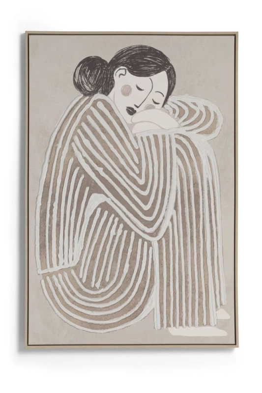 Het Fae schilderij van COCOmaison is een elegant kunstwerk dat verfijning en rust uitstraalt. Op dit 80 x 120 cm canvas is een zittende vrouw met opgetrokken knieën te zien, subtiel vormgegeven in een crèmekleurige en natuurlijke kleursamenstelling. Wat dit schilderij extra bijzonder maakt, zijn de prachtige 3D-effecten die diepte en textuur toevoegen, waardoor het kunstwerk echt tot leven komt. Perfect voor een modern of minimalistisch interieur!