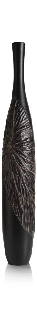FAYE is een prachtige zwarte hoge vaas uit de collectie van COCOmaison, met een ingekerfd bladmotief. Dit motief geeft de vaas een bijzondere uitstraling, die heel goed past in een landelijke of juist een meer etnische woonstijl. Wanneer je de vaas aankleedt met een enkele lange tak of met pampas benadruk vestig je nog meer de aandacht op het natuurmotief. Deze FAYE vaas is 107 cm hoog en heeft een slanke vorm, maar hij is ook verkrijgbaar in een wat lagere en juist bredere vorm. Beide zijn gemaakt van het lichte, sterke materiaal polyresin, dat ook nog eens waterbestendig is .