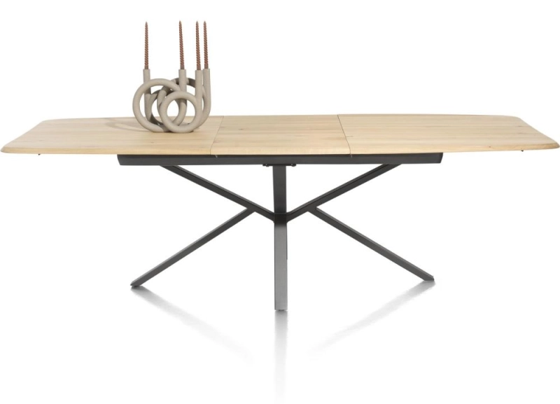 De tafels uit collectie Home van Henders & Hazel hebben een pure, Scandinavische look. Het tafelblad is gemaakt van massief eikenhout in een natuurlijke houtkleur, wat bijdraagt aan de Scandinavische look. De kleur en de vorm van het tafelblad brengen ongetwijfeld rust in je interieur. Vergeet rechte lijnen, maar ga voor een tafel met afgeronde randen zonder scherpe hoeken. Deze tafel is uitschuifbaar en heeft een centrale, zwart metalen poot die niet met de aandacht gaat lopen. De voornaamste blikvanger is het massieve tafelblad. Dit tafelblad is standaard 190cm, maar je kunt het tafelblad verlengen tot wel 250cm!