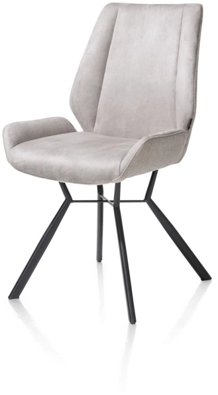 De moderne eetkamerstoel Ivy is in verschillende kleuren verkrijgbaar. Deze variant van de eetkamerstoel heeft de kleur crème. Opvallend is dat er bij de stoffering gebruik is gemaakt van twee verschillende stofsoorten. De achterzijde is voorzien van de geweven stof Ponti, de voorzijde is bekleed met Calabria, een stoere microvezelstof. De zwart metalen poten, met eigentijds design, vormen een mooi contract met de crèmekleurige bekleding.