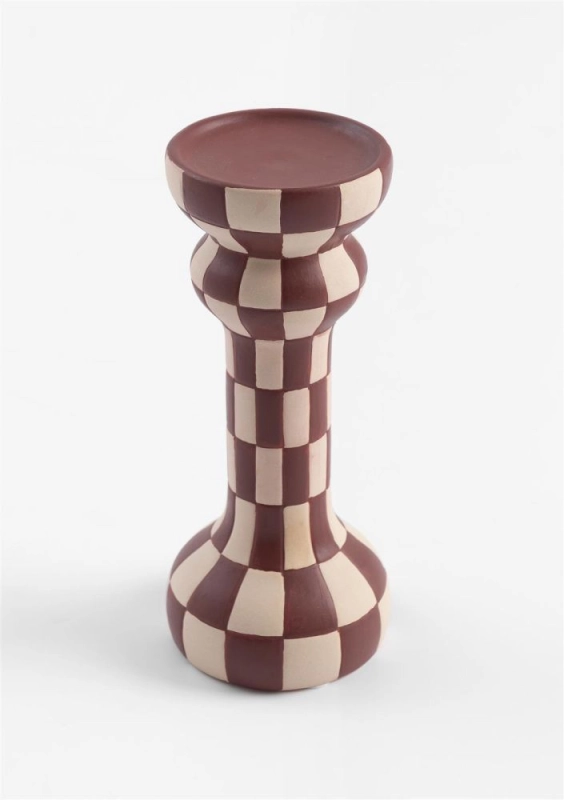 Voeg een vleugje klassieke charme toe aan je interieur met de Jacob kandelaar van COCOmaison. Deze elegante kandelaar is 24 cm hoog en is gemaakt van keramiek. Deze kandelaar heeft een verfijnde matte finish in bordeauxrood met wit. Het blokjesmotief geeft de kandelaar een subtiele textuur en een unieke uitstraling. Dankzij de klassieke vorm past de Jacob kandelaar moeiteloos in zowel moderne als traditionele interieurs. Combineer de Jacob kandelaar met de bijpassende vaas van COCOmaison voor een harmonieus en stijlvol geheel.