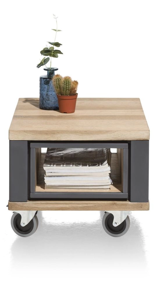 Dit landelijke bijzettafeltje uit de Jardin collectie van Henders & Hazel combineert strakke lijnen met een warme uitstraling. Opvallend is de combinatie van materialen en kleuren. Het eikenfineer is afgewerkt in de kleur Railway Brown en het MDF heeft de kleur antraciet. Dankzij de wieltjes is de bijzettafel handig te verplaatsen. Het wordt standaard óók geleverd met pootjes. Het tafeltje is 60x50cm en heeft een handig open vak waar je spulletjes in kunt opbergen. Er is ook een bijzettafel in de kleuren Railway Brown met Pure White.