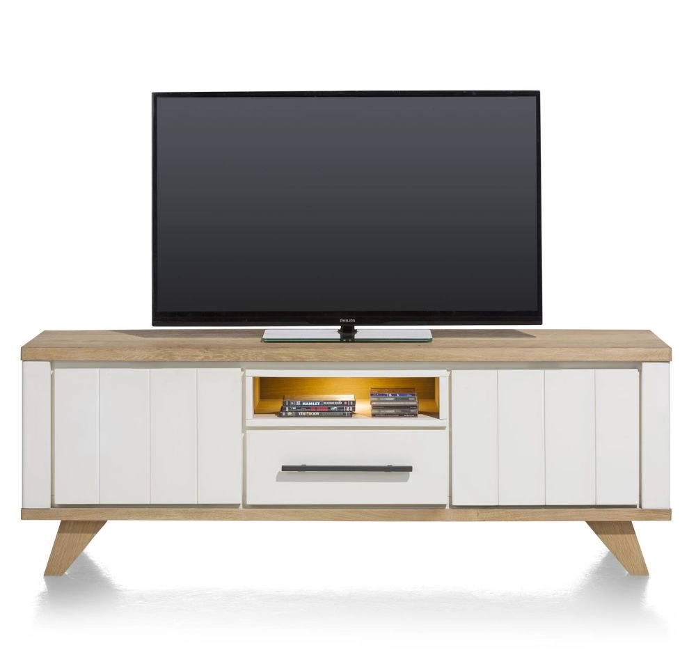 Jardin, lowboard 170 cm - 1-lade + 1-niche + 2-kleppen (+ LED) - wit