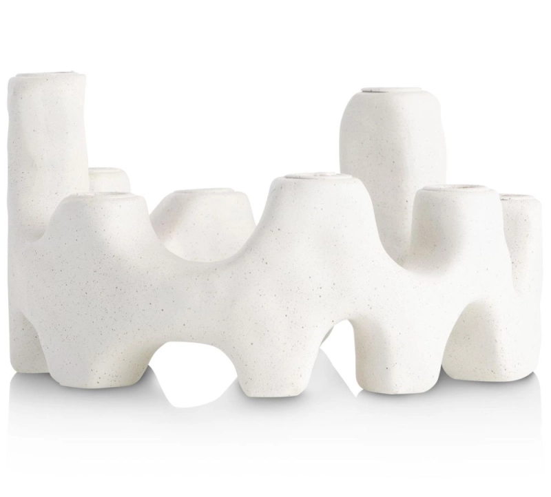 In deze leuke ronde kandelaar van COCOmaison passen maar liefst 9 dinerkaarsen. De JET kandelaar heeft een doorsnede van zo'n 26 cm neutraal en een variabele hoogte tot maximaal 14 cm. De kleur is neutraal wit, dus je kunt er elke kleur kaars in zetten die je wilt of meerdere kleuren combineren. Helemaal trendy wordt het als je spiraal-kaarsen of dip-dye kaarsen gebruikt en wil je variëren met de seizoenen, kies dan bijvoorbeeld geel met Pasen en rode, groene of metallic kaarsen met de feestdagen. Zo heb je het hele jaar rond plezier van deze kandelaar!