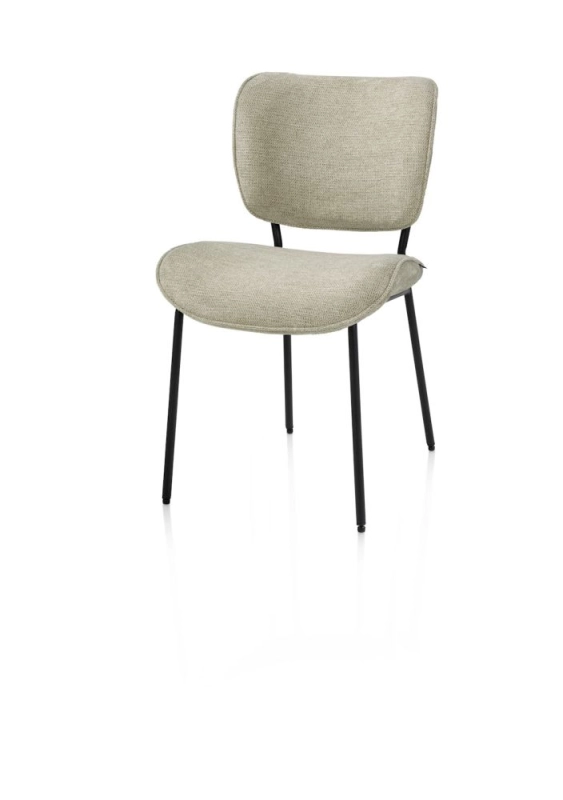 Julia, eetkamerstoel - 4-pootjes - rough off black - stof Vada - Salie groen