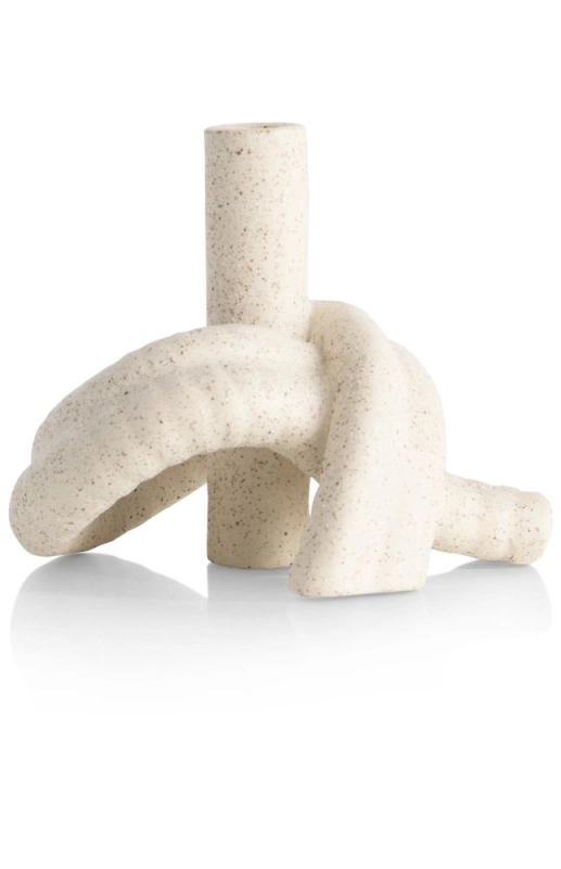 KIKI is een schattig vaasje van COCOmaison in twee verschillende modellen. Beide zijn geïnspireerd op een koord, dat in dit geval geknoopt lijkt. De hoogste van dit model is 15 cm, de andere is 17 cm. Het vaasje heeft een smalle opening waar je een takje of bloem in kunt zetten. KIKI is gemaakt van polyresin en heeft een crèmekleurige betonlook.