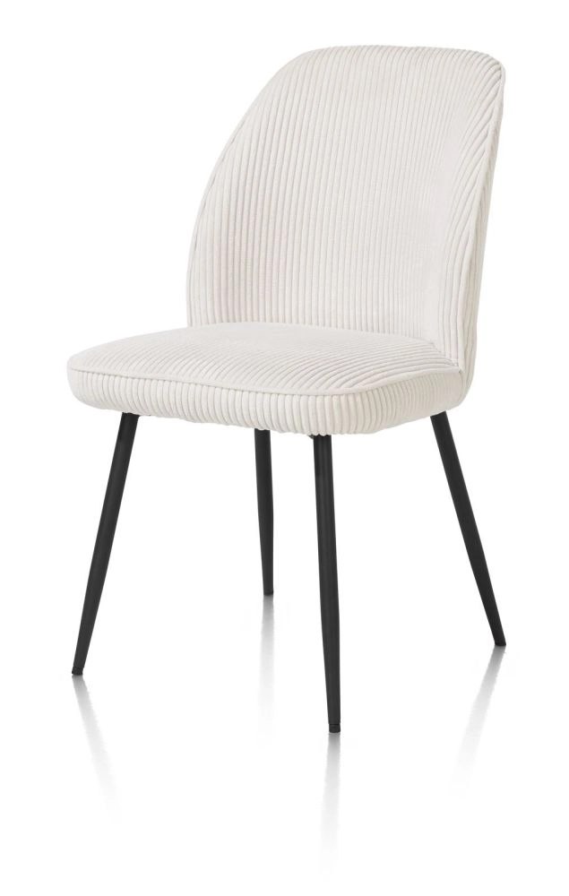 Deze stoel Leonidas heeft een simpel design met een brede rug, maar de grootste aandachtstrekker aan deze stoel is zonder twijfel de ultrazachte veloursstof Rivas waarmee de stoel bekleed is. Deze ribstof voelt heel zacht en aaibaar aan, daarom is deze stof een genot om op te zitten! Deze versie is uitgevoerd in de kleur Crème, maar er zijn ook nog 3 andere kleuren verkrijgbaar!