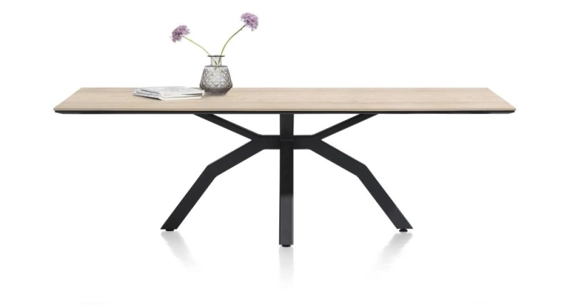 Bij Henders & Hazel vind je diverse eetkamertafels die je naar eigen wens kunt laten uitvoeren. Deze moderne eetkamertafel uit de Livada collectie is daar een fraai voorbeeld van. De tafel is in meerdere maten verkrijgbaar, deze is 220 x 100 cm. Voor het tafelblad heb je keuze uit 4 kleuren: Onyx, Natural, Railway Brown en Choco Brown. Er zijn 3 varianten voor de tafelpoten: een zwart metalen spinpoot, een zwart metalen V-poot of een zwart metalen V-poot met houten inleg.BELANGRIJK VOOR ONDERHOUD: De kleuren Onyx, Railway Brown en Choco Brown behandel je met Matt Polish, de kleur Natural behandel je met Natural Woodsealer 2.0.