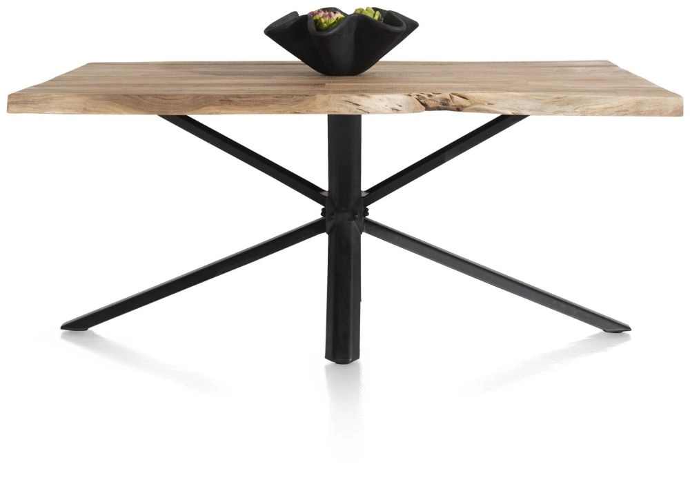 Alle eetkamertafels uit deze Living-collectie van Henders & Hazel zijn uniek. Dit komt vooral door het bijzondere tafelblad. Bijzonder hieraan is de rand, hierdoor houdt het blad zijn natuurlijke karakter. De zwart metalen tafelpoot versterkt de stoere uitstraling van het robuuste tafelblad. De eetkamertafel is verkrijgbaar in drie verschillende afmetingen: 240 x 100 cm, 210 x 100 cm en 180 x 100 cm.