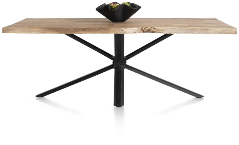 Alle eetkamertafels uit deze Living-collectie van Henders & Hazel zijn uniek. Dit komt vooral door het bijzondere tafelblad. Bijzonder hieraan is de rand, hierdoor houdt het blad zijn natuurlijke karakter. De zwart metalen tafelpoot versterkt de stoere uitstraling van het robuuste tafelblad. De eetkamertafel is verkrijgbaar in drie verschillende afmetingen: 240 x 100 cm, 210 x 100 cm en 180 x 100 cm.