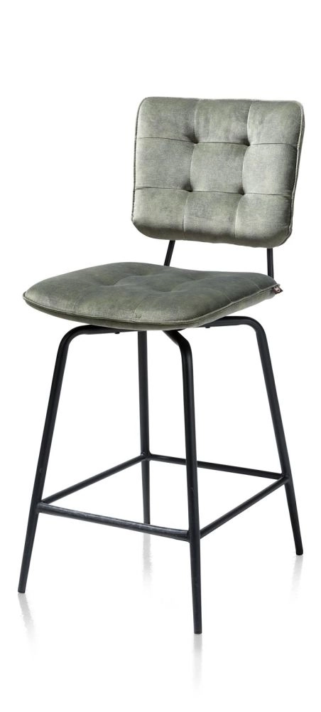 Deze moderne barstoel Manou is 102 cm hoog en heeft een trendy design. De barstoel is makkelijk te combineren met verschillende woonstijlen. Opvallend zijn de gecapitonneerde rugleuning en zitting. Het onderstel is van metaal in de kleur off black. Voor de bekleding van de rugleuning en zitting is gekozen voor de stof Karese. Dit is een sterke microvezelstof die heerlijk zacht aanvoelt, maar tegelijk super sterk is. Deze versie van de barstoel is uitgevoerd in de kleur olijf.