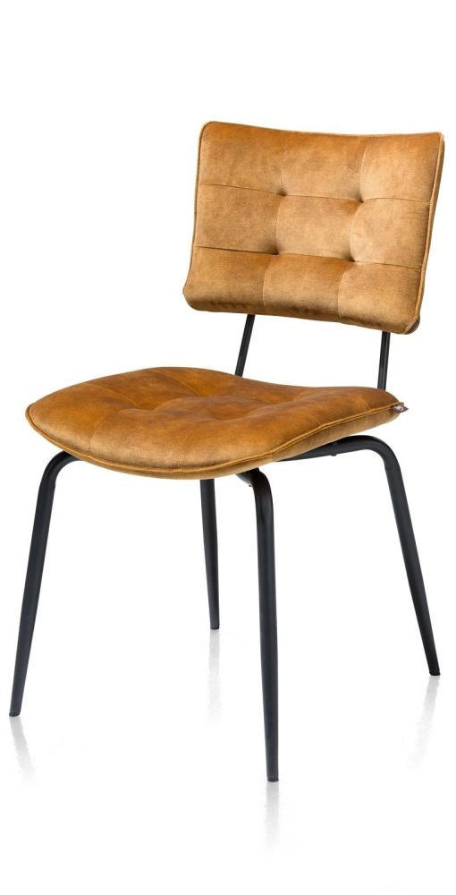 Eetkamerstoel Manou heeft een klassiek design, maar voldoet prima aan de woontrends van nu. De stoel heeft een off black metalen frame. Opvallend zijn de gecapitonneerde zitting en rugleuning. Voor de bekleding van deze stoel Manou is gekozen voor de stof Karese in de warme kleur Oker. Deze eetkamerstoel is in meerdere kleuren verkrijgbaar, ook leuk om met elkaar te combineren.
