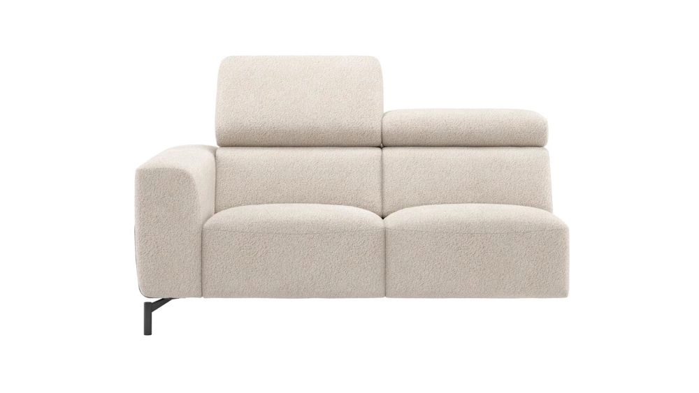 De MARTANO 2-zits arm links ademt stijl en elegantie met zijn prachtige, ronde kiezelvormen. Personaliseer deze elementenbank door te kiezen uit een breed scala aan stoffen en kleuren. Standaard is MARTANO uitgerust met handmatig verstelbare hoofdsteunen. Wil je nog meer luxe? Breid jouw MARTANO dan uit met een relaxsysteem: ga voor de normale elektrische relaxfunctie of kies voor de variant waarbij je voeten hoger liggen dan je hart. Dankzij USB- en USB-C-poorten in het relaxsysteem laden je gadgets op terwijl jij ontspant. De comfortabele zitting is standaard voorzien van supreme foam en voor extra luxe kun je kiezen voor pocketvering. Het stijlvolle designframe maakt jouw MARTANO 2-zits arm links compleet.
