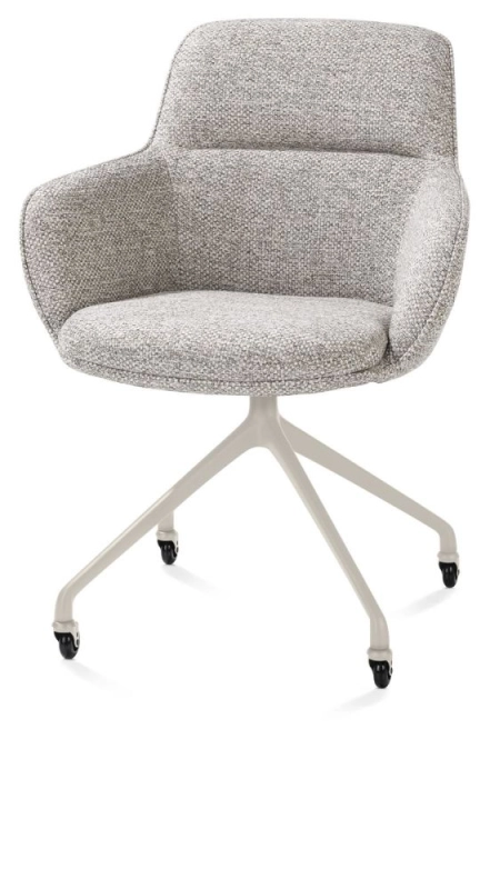 Mateo is de stoel die elegantie, comfort en functionaliteit moeiteloos samenbrengt. In deze versie met armleuningen en bekleed met zachte Bellini-stof in kiezel of crème, wordt hij een stijlvolle aanvulling op je eethoek. De slanke lijnen, fijne afwerking en subtiele stiksels geven Mateo een verfijnde look die past in zowel moderne als tijdloze interieurs.Kies je voor wieltjes, dan geniet je van extra mobiliteit – ideaal voor tafels waar flexibiliteit gewenst is. De variant met draaibare voet biedt een dynamisch zitgevoel en is perfect voor lange, gezellige avonden. En wie houdt van een vaste, stabiele basis, vindt in het model met vier pootjes een rustige en strakke uitstraling.De ergonomische vorm van rug en zitting zorgt in elk geval voor aangenaam zitcomfort, zelfs wanneer het diner uitloopt. Mateo is beschikbaar in verschillende uitvoeringen, maar deze crème versies in Bellini-stof zorgen gegarandeerd voor licht, zachtheid en stijl in jouw interieur.