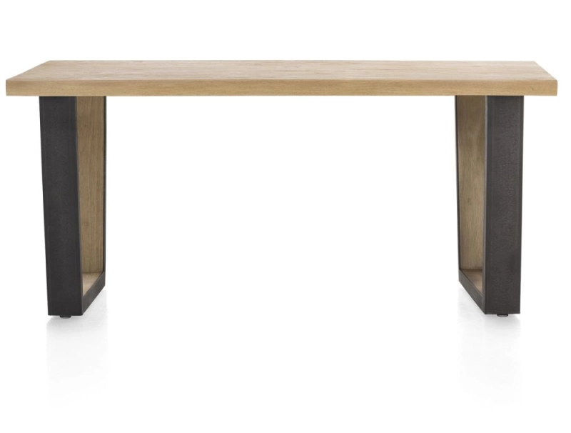 Metalox, eetkamertafel 170 x 100 cm - met rand boomschors + V-vorm metalen / houten poot
