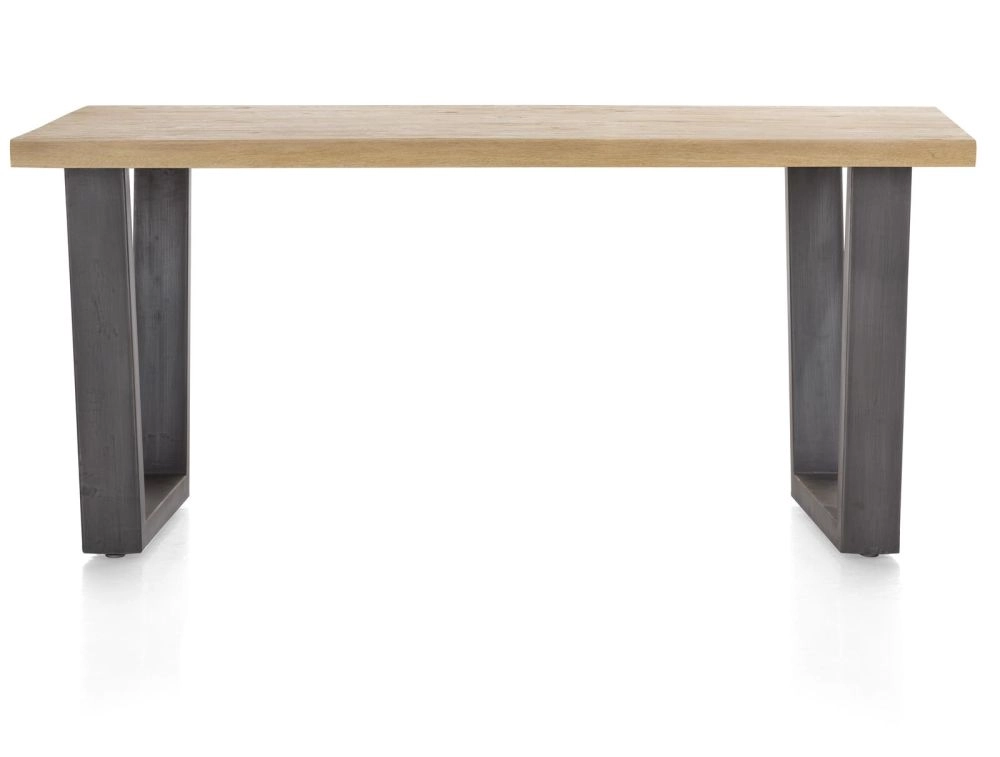 Een houten tafelblad met boomschorsrand, metalen tafelpoten in V-vorm. Deze eetkamertafel uit de Metalox collectie van Henders & Hazel is een mooi voorbeeld van eigentijds design. De tafel is 170 x 100 cm en een aanwinst voor het interieur.