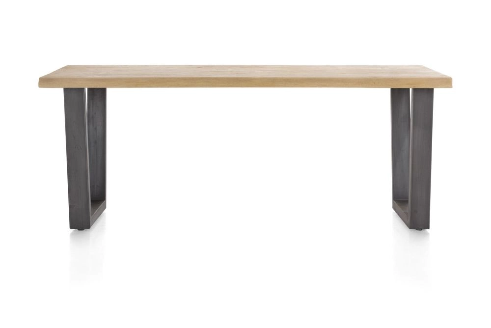 Deze opvallende eetkamertafel komt uit de Metalox collectie van Henders & Hazel. Bijzonder is het eikenhouten tafelblad met boomschorsrand. Opvallend zijn de metalen poten in V-vorm. Samen vormen ze een fraaie eigentijdse eetkamertafel met een vleugje vintage.