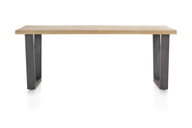 Metalox, eetkamertafel 200 x 100 cm - zonder rand boomschors + V-vorm metalen poot