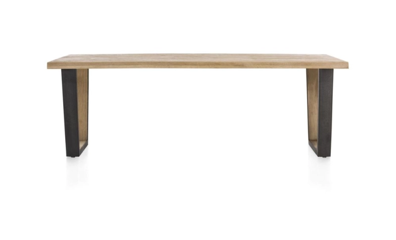 Deze XL-eetkamertafel uit de Metalox collectie van Henders & Hazel is 250 x 100 cm. Opvallend aan deze eettafel zijn de stoere poten in V-vorm uitgevoerd in hout en metaal. Samen met het strakke houten tafelblad geven ze de tafel een stoer eigentijds uiterlijk. Aan tafel!