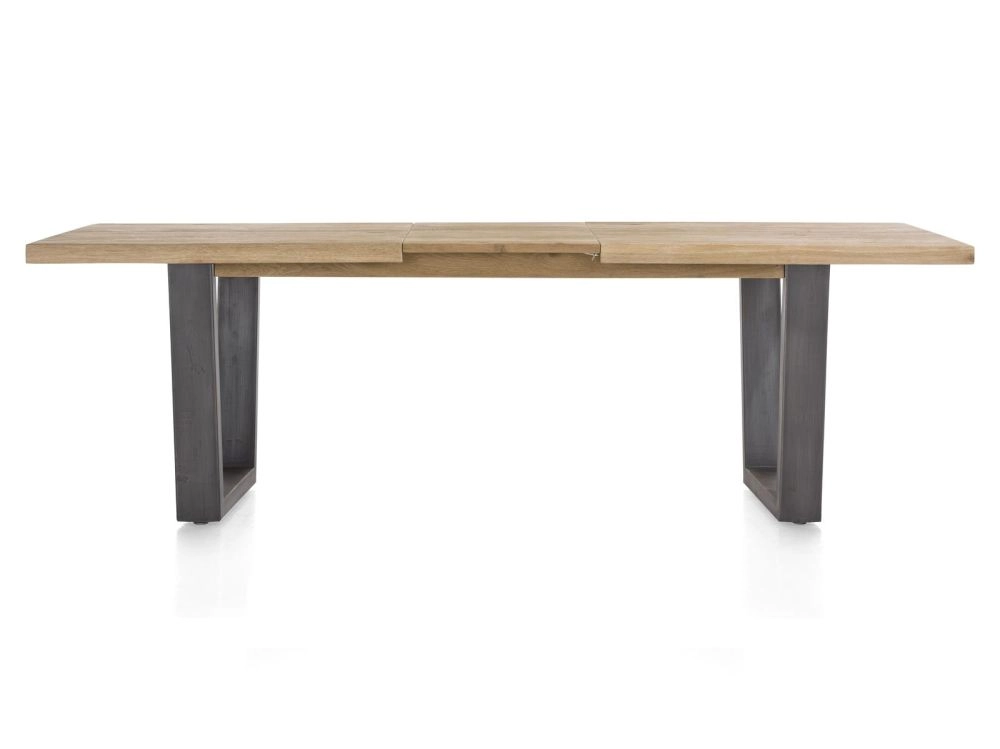 Deze moderne eettafel uit de Metalox collectie van Henders & Hazel is 190 x 100 cm. De tafel is eenvoudig met 50 cm te verlengen. Opvallend is het moderne en stoere design. Het houten tafelblad heeft een robuuste boomschorsrand. Daaronder staan stoere metalen poten in een V-vorm. Een aanrader voor de liefhebbers van stoere meubels met een moderne uitstraling.