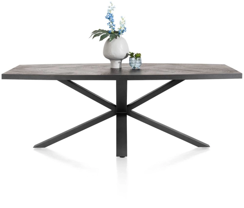 Metaluxe, eetkamertafel ovaal 210 x 110 cm met centrale kruispoot - fineer als fish bone - Antraciet