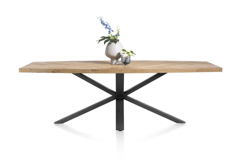Metaluxe, eetkamertafel ovaal 210 x 110 cm met centrale kruispoot - fineer als fish bone - Railway brown