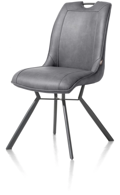 Michiel, eetkamerstoel - 4-poots met kruisverbinding + greep - stof pala - Antraciet