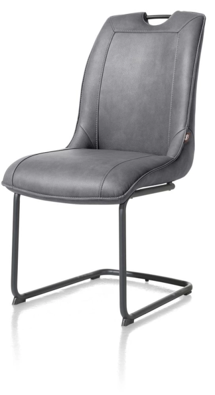 Eetkamerstoel Michiel heeft een tijdloos design. Deze stoel voelt zich in vrijwel elk interieur thuis. Michiel is in verschillende kleuren en uitvoeringen leverbaar. Deze variant van de eetkamerstoel heeft een rond, zwart metalen swingframe. De stoel is bekleed met de lederlook Pala in de kleur antraciet en heeft een praktische handgreep op de rugleuning. Michiel is ook als barstoel verkrijgbaar.