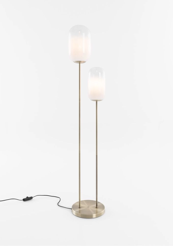 Ontdek de verfijnde COCOmaison Milky vloerlamp, een stijlvolle toevoeging aan jouw interieur. Deze elegante vloerlamp heeft twee glazen bollen, elk met een witte gradiënt over het glas heen, wat een uniek en artistiek effect creëert. Het metaal is afgewerkt in goud, wat zorgt voor een luxe en moderne uitstraling. Met een diameter van 30 cm en een hoogte van 165 cm, past de Milky vloerlamp perfect in diverse ruimtes. De lamp is dimbaar, waardoor je de lichtintensiteit eenvoudig kunt aanpassen naar wens. De Milky vloerlamp is uitgerust met 2*E27 fittingen, wat zorgt voor een optimale verlichting. Maak de set compleet door te combineren met de bijpassende hanglamp en tafellamp.