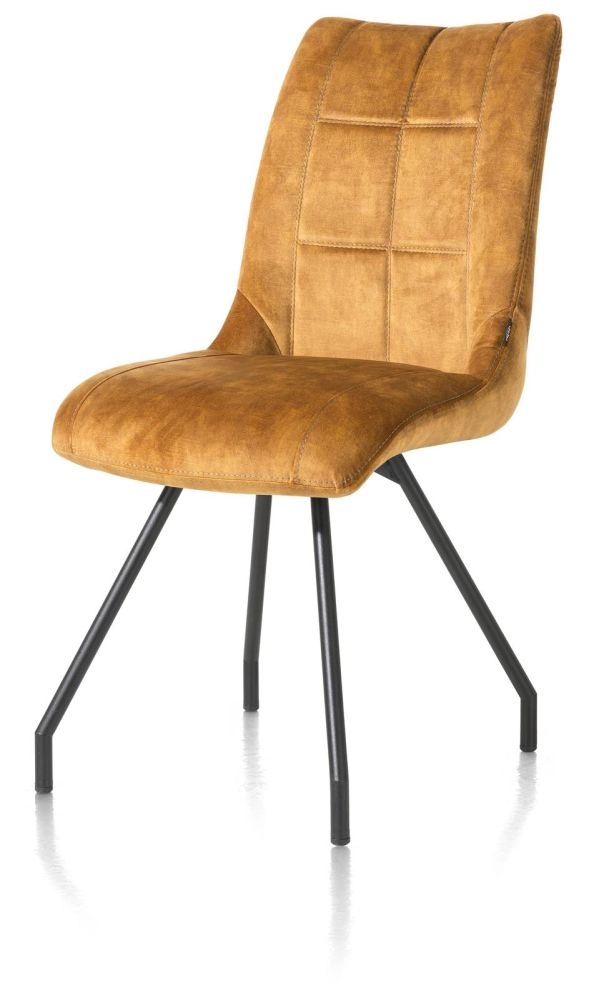 Mischa, eetkamerstoel - 4-poots + greep - stof karese - Okergeel
