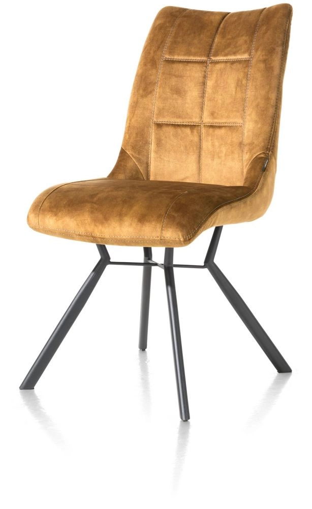 Mischa, eetkamerstoel - 4-poots met kruisverbinding + greep - stof karese - Okergeel